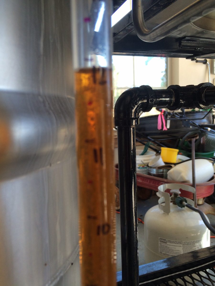 I added my last addition and prepared to knock out. I decided to proceed with ground water, as opposed to circulating ice water, and still knocked out at 66F, perfect for pitching. I have modified my Chill Wizard to use a convoluted counterflow chiller rather than the big plate chiller. I have been frustrated with the difficulty in keeping the plate chiller clean. I chilled and pumped directly into my SS BrewTech 1/2 Barrel Chronical. Hit target gravity right on.