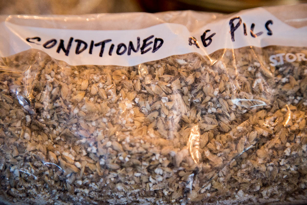 The wet or conditioned malt had entire and intact malt husks where the dry malt had somewhat intact husks, but there were more torn and shattered bits. By eye, it appeared that the dry malt had created more dusty flour, and everything in the bag seemed slightly coated. The conditioned malt showed less flour, or at least, if the flour stuck to something, it hydrated. Otherwise, natural separation in the zip lock bags showed both had a few tablespoons of flour and an otherwise "coarse" mealy appearance.