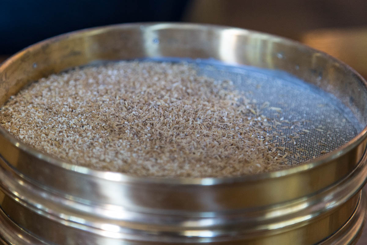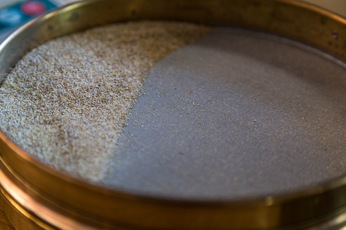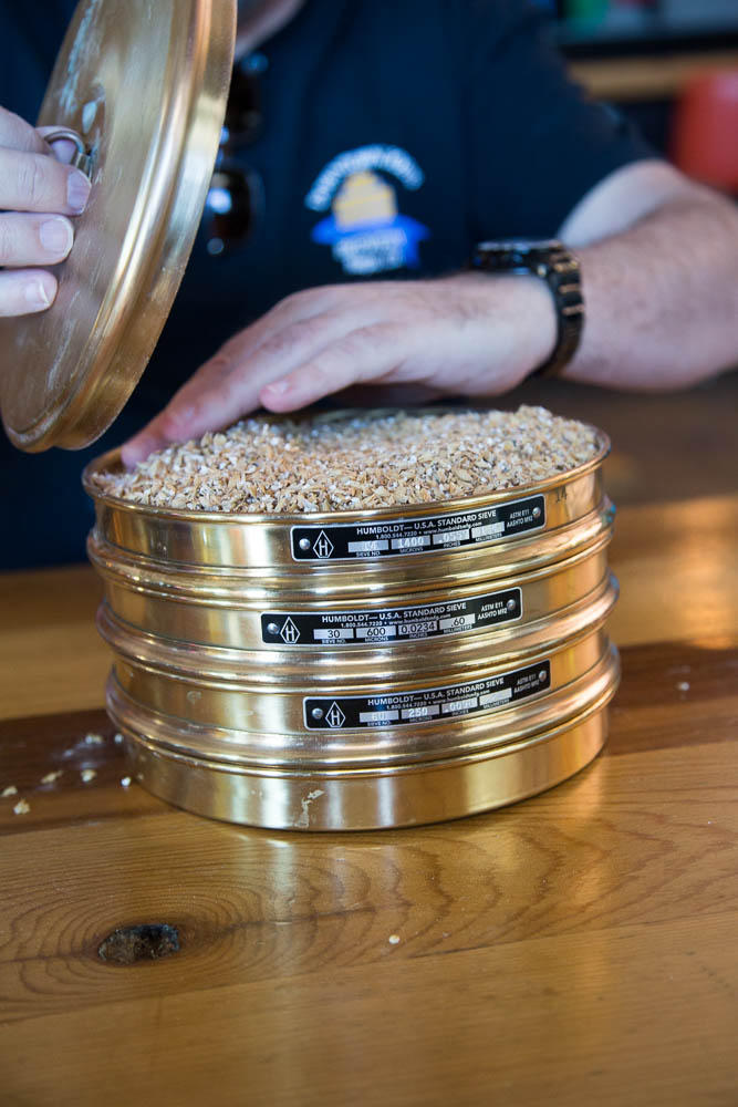 The ASBC has testing standards that separate particles into 4 sizes, with percentage recommendations for commercial systems. Brewers can purchase specific graduated sieves that nest, featuring a mesh filter that gets finer for each sieve, and a pan to collect the finest flour. Brewers can then analyze their mill setting for large, medium, small particles as well as flour, as a percentage of the whole. These numbers are useful to match grit sizes between batches or different malt choices, or simply resetting after mill cleaning and maintenance.